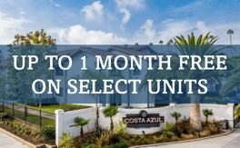 You've seen the rest, now see the BEST! Costa Azul is located in the beautiful city of Santa Fe Springs. Our community is a 55+ Apartment Living. Come visit us today and see for yourself! You will be greeted by our friendly leasing professionals. Costa Azul proudly offers 1 and 2-bedroom apartment homes. Our interiors feature gourmet kitchens with counter tops and appliance package, vinyl flooring, central air conditioning and heat, private patios/ balconies, and ample closet space. You will be impressed by amenities such as, clubhouse, sparkling swimming pool and spa, beautifully appointed poolside lounge areas, BBQ/ picnic areas and lushly landscaped grounds. Additionally, a brand new state of the art fitness facility! Costa Azul is centrally located near dining, shopping, entertainment, and freeways for an easy commute. Come home to Costa Azul Apartments.