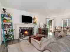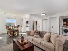 THE UNIT: Facing south, this unit has natural light, a dining area, full kitchen with soft close drawers, a sun window, and a living room area with a REAL WOOD BURNIG FIREPLACE! The laundry room has a washer and dryer with tasteful floating wood shelves and built-in storage. Bathroom is a clean aesthetic with updated backsplash and new tiling. The master bedroom is spacious enough to fit a bed, dresser, desk (remote work life), and a reading chair! The walk-in closet has plenty of shelving and hanger space. Lastly, the deck features new paneling and provides the perfect combo of sun and shade throughout the day.