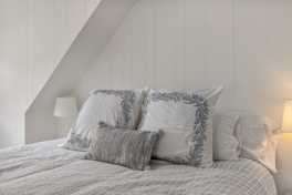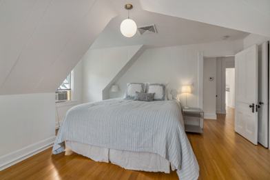 The master bedroom has a California King size bed, shelf storage, black out shades and closet. The second bedroom has two comfortable twin beds, black out shades, closet and dedicated work area. The third bedroom has a queen size bed, closet and shelves.