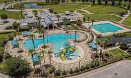 Welcome to the Connerton Village Community. This community offers a 10,000 square foot clubhouse, resort style pool including a kidz zone with a waterpark, a fitness center, Conner Town Cafe, basketball courts, volleyball courts, tennis courts, pickleball courts, an outdoor amphitheater and dog parks. Connerton is a haven for outdoor enthusiasts. Walkers, bikers and runners relish the miles of boardwalks and trails that wind their way through the communities lakes and natural wetlands, making it easy for the residents of Connerton to enjoy the serenity and beauty of the natural landscape. This 2022 built home is a spacious single story home that offers an open floor plan with a living room and open kitchen that features a center island with a breakfast bar, a fridge, stove, dishwasher, and a microwave. The master en-suite bathroom has double sinks and a step in shower. All bedrooms are a nice size and offer high ceilings and ceiling fans. Other features include carpet and tile throughout and a covered patio overlooking a nice sized yard. Do not miss this great new home! It will not last long!