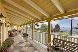 This gracious, light-filled Mediterranean greets you with a broad verandah and sweeping Bay views. A wide staircase from the lower floor and its private primary suite (the spa-like bathroom is sure to please!) leads to a vaulted living room and adjacent formal dining room, both featuring original details. The updated kitchen includes a breakfast nook (coffee with views!) and access to the expansive backyard and sunny southern exposure - perfect for entertaining or hammocks. French doors from each of the two charming upper bedrooms welcome summer breezes off the common patio. A large two car garage sports a Tesla charger. Home is unfurnished. Dogs under 20 lbs will be considered.