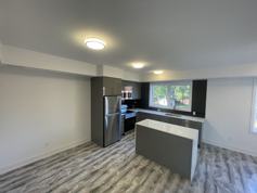 Clean vinyl plank floors throughout, with modern off-white painted walls