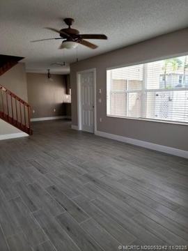 Welcome to Sunset Trace in Palm City! This immaculate 2-bedroom, 2.5-bathroom townhouse offers move-in ready comfort with thoughtful upgrades throughout. You'll appreciate the updated kitchen featuring modern cabinets and countertops, refreshed bathrooms, and excellent overall condition. The master suite boasts a spacious walk-in closet and private bathroom, while generous storage and a large outdoor patio provide plenty of room to spread out. The convenient first-floor laundry adds to the easy living experience. Enjoy resort-style amenities including a community pool, tennis courts, basketball court, and playground. Two assigned parking spaces included. No pets, no smoking, no commercial vehicles or motorcycles. Available for immediate occupancy. Close to I-95 & turnpike, walking distance to restaurants and stores, close to beaches.