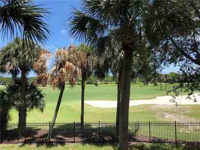Beautiful golf course view on second floor. Elevator access, lots of amenities, newer plank tile floors throughout, stainless steel appliances in gated community of Fairways at Grand Harbor. Available now!