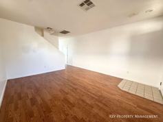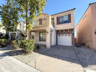 Bright and inviting two-story home featuring 3 bedrooms and a 1-car garage near the 215 and Tropicana. Enjoy durable vinyl wood flooring throughout, a comfortable breakfast-bar kitchen, and all appliances included for easy move-in. The primary suite offers its own private balcony, while the low-maintenance front and backyard make upkeep simple. Laundry room is conveniently located on the second floor. A solid, practical rental in a great location.