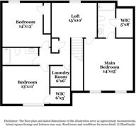Upstairs, you’ll find all three bedrooms and a versatile loft area that can serve as a home office or relaxation space. The main bedroom includes a walk-in closet and a private ensuite bath with a soaking tub and separate vanity area. Additional bedrooms are generously sized with ample natural light, and the upstairs laundry room adds convenience.