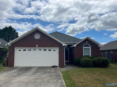 3br/2ba minutes from I-65 for commute to Redstone Arsenal and Madison. Spacious living room with access to side patio. Master bedroom has a large walk-in closet and a full bath with a separate shower and tub. Laundry area is located off hallway going to bedrooms. Bedrooms 2&3 share a full bath of hallway. Fenced own back yard with patio area. 2 car front entry attached garage the also has a storm shelter in it. All utilities to be paid by tenant. No pets. Nonfunctional fireplace.
