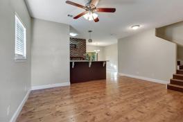 Fabulous end unit right next to the pool with a rear covered porch....perfect for relaxing at the end of your day! Beautiful laminate flooring and tile downstairs and real heart-pine wood flooring upstairs. No carpet to vacuum or clean! The living/dining/kitchen combo is open concept. The kitchen features subway tile backsplash, a pantry, and an awesome brick accent wall. There is a large guest bath just off the kitchen that also houses the laundry area. A single car garage, under stair storage and beautiful covered patio round out the first floor. Upstairs are two generous bedrooms each with its own en-suite! Don't miss out on the opportunity to make this house your own - schedule a viewing today! Call View rental requirements or apply