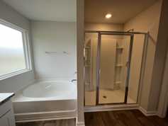 Popular Cali Floorplan - 4 bedroom, 2 bath with luxury vinyl flooring throughout. Split bedroom plan. Carpet in the bedrooms and closets. Granite counter tops in kitchen and baths. Double garage. Large laundry room, Covered patio. Primary bath includes walk in closet,garden tub, stand alone shower, double vanity, and a private water closet. Community AMENITIES include: Club House, Exercise -Fitness, Playground, Adult only Pool, Walking - Nature Trails, 6700 sq. ft, resort-style, zero-entry pool with 20' water slide, Splash Pad,Scenic Lakes/Fishing. Pets negotiable, case by case.