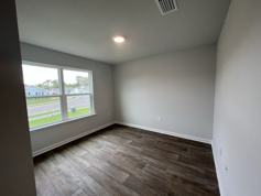 Popular Cali Floorplan - 4 bedroom, 2 bath with luxury vinyl flooring throughout. Split bedroom plan. Carpet in the bedrooms and closets. Granite counter tops in kitchen and baths. Double garage. Large laundry room, Covered patio. Primary bath includes walk in closet,garden tub, stand alone shower, double vanity, and a private water closet. Community AMENITIES include: Club House, Exercise -Fitness, Playground, Adult only Pool, Walking - Nature Trails, 6700 sq. ft, resort-style, zero-entry pool with 20' water slide, Splash Pad,Scenic Lakes/Fishing. Pets negotiable, case by case.