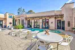 AVAILABLE FOR LEASE MARCH AND APRIL 2026. Exceptional. Stunning, Dramatic. Welcome to this exquisite Tuscan inspired VILLA in Rancho Mirage, where luxury living meets breathtaking golf course and mountain views. Designed for both elegant living and unforgettable entertaining, this residence boasts 3 spacious bedrooms and 4 beautifully remodeled bathrooms, each finished with luxurious stonework featuring marble and granite through- out. Rich Travertine flooring flows seamlessly through the home, enhancing timeless sophistication. The grand living room with fireplace sets a warm inviting tone, while the dining rooms upholstered walls add a dramatic designers touch. A fully appointed wet bar and surround system elevate the homes entertainment appeal. Ay the heart of the home s a large Gourmet kitchen, showcasing Viking appliances, and expansive center island, and beautiful cabinetry and counter tops, the homes entertainment appeal. Step outside to a private resort style oasis featuring a sparking pool and spa, loungers with umbrellas, and a built in outdoor kitchen, ideal for year round desert entertaining. A charming Casita offers flexible space for guests, a private retreat with its own entrance. This remarkable Tuscan Villa delivers luxury, comfort, and dramatic desert beauty- all set against one of Mirages most stunning backdrops.
