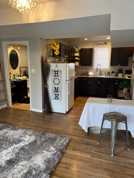 First floor 3 bedroom unit with on-suite laundry access of a multi-unit property located near baseball fields, park, walking and biking trails, downtown restaurants and bars. Within the Romeoville Valley View Community Unit School District 365u. This unit has front and back door entrances, with an unfinished basement for laundry and can be used for storage. Kitchen has dark cherry wood cabinets with crystal knobs that give the unit an elevated look. Light fixtures are new semi-flush mount chandeliers in the living space, hallway and master bedroom. This unit was remodeled with new drywall, paint, closets (including closet doors), floor trim, and window casing. No carpet, there is hard wood flooring throughout. Handicap accessible bathroom and shower/tub stall with hand rails.