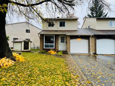 Ottawa, Convent Glen North! Available May 1st. Beautiful 3 bedroom, 2.5 bath SEMI-DETACHED House for rent. Foyer w/french door and ceramic tile. Hardwood flooring on 2 levels! Updated eat-in kitchen w/wood cabinets, fridge, stove, dishwasher and window over double sinks, glass door accent, eating area w/floor to ceiling windows! Open concept living/dining rooms, triple patio doors w/southern rear exposure. Powder room w/broom closet! Open staircase up and down w/oak railings and rod iron spindles! Primary bedroom w/twin windows, double sided walk-in closet, 3 pce ensuite with newer bathtub/shower! Two additional rear bedrooms w/wall of closets. 4 pc main bathroom. A/C. Partially finished basement w/rec room, twin windows and built-in cabinets, laundry room, work shop, storage! Indoor access to single car garage. Private Partially fenced backyard w/mature trees and patio. Easy access to neighbourhood, bike paths, river walks, schools, shopping and future LRT transit. Wood Fireplace doesn’t work. NO SMOKING!