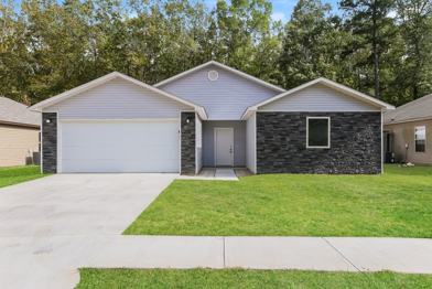 Located at 225 Iris Street in Haskell, AR, this 3-bedroom, 2-bathroom home offers approximately 1,420 square feet of thoughtfully arranged living space with a two-car garage and welcoming front entry. The exterior features clean architectural lines and stone-accent details that create a polished first impression while maintaining a comfortable residential feel.
