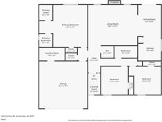 The primary bedroom is set apart from the secondary bedrooms, offering added privacy and generous proportions. An attached bathroom includes a wide vanity and a tub/shower combination, while two additional bedrooms are arranged nearby with convenient access to the second full bathroom. The bedroom wing balances openness and separation, creating a layout that adapts easily to different living needs.