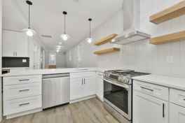 Located in Bostons trendiest new neighborhood, this newly renovated (to the studs) 4-bedroom 3 full bath offers lots of light and a backyard deck. Open kitchen and living room layout with high ceilings. The kitchen features modern cabinetry and stainless steel appliances. All bedrooms include well-sized closets. Washer/Dryer located in unit! Central air -conditioning, forced hot air and hardwood floors throughout complete this rare offering. PLUS there is a large PRIVATE enclosed back deck available for each unit. Airport T stop is only two blocks from your front door which offers a 24 hour FREE airport shuttle service to all major airlines. 2 stops on the newly renovated blue line to Aquarium, 3 stops to State Street. Also less than a 10 minute walk to the newly done Piers Park and East Boston Greenway. Rinos famous restaurant, Angelas Cafe, grocery, shopping, gyms/yoga studio and restaurants all within a few blocks from your front door.