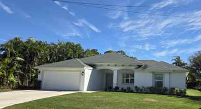 This beautifully built 2021 home is now available for lease! This spacious 4-bedroom, 2-bath home has been freshly painted and offers a variety of fantastic amenities. The large main bedroom suite features a spacious bathroom with his and her sinks, a Roman tub, and a generous closet, creating the perfect private retreat. The kitchen boasts wood cabinets, granite countertops, an island, and a convenient pantry for extra storage—perfect for those who love to cook and entertain. Appliances include a stove, refrigerator, dishwasher, microwave, washer, and dryer. Enjoy a large porch, perfect for barbecuing with friends and family, along with a large backyard ideal for outdoor relaxation and fun. The porch and backyard also connect to the cabana bath, which is linked to the second bathroom. The home is tiled throughout, with carpet only in the three additional bedrooms. Plus, there's a two-car garage for added convenience. Lawn maintenance is included. Don't miss out on this stunning rental opportunity! Tenant or Tenant agent to verify all information and size. Courtesy of: Cala Realty Listing posted by Matthew Dixon (772) 985-9883. [SYNDID 4119081 12182025]