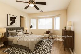 Welcome to 1315 S 222nd Avenue in Buckeye, Arizona with 3 bedrooms and 2 bathrooms that is thoughtfully updated home that combines open-concept living with contemporary finishes and abundant natural light. As you enter, you are greeted by a spacious layout that flows effortlessly from the living area to the dining space and kitchen, creating an ideal setting for both relaxing and entertaining. The kitchen features clean white cabinetry, a breakfast bar, and modern lighting, offering both functionality and charm. Throughout the home, warm-toned laminate wood flooring adds a touch of elegance, while large windows and sliding glass doors invite sunlight to fill every corner. The primary suite is a peaceful retreat, complete with a stylish bay window, ceiling fan, and easy access to a generous closet and bathroom space. Two additional bedrooms offer flexibility for a home office, guest room, or kids room. Each one light-filled and inviting. Step outside through the sliding glass door to a private backyard. Disclosure: Some images have been virtually staged to better showcase the true potential of rooms and spaces in the home.