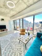 FULLY FURNISHED With Stylish Brand New Furniture. Modern, Spacious And Comfortable. Unobstructed Sunset Views. Large Den Can Serve As A 2nd Bedroom- Sliding Doors. Exposed Concrete, 9Ft Ceilings. Hardwood Floors. Breakfast Bar With Stone Counters.