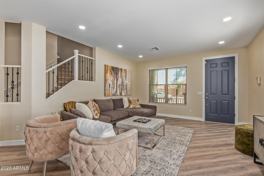 Beautifully updated two-story home in the highly sought-after San Tan Heights community, offering space, style, and comfort with 5 bedrooms plus a den and 3.5 bathrooms. This home features excellent curb appeal, mountain views, and a three-car garage. The main level boasts luxury wood-look vinyl plank flooring, an open and spacious kitchen with white cabinets, quartz countertops, a massive center island, and LED recessed lighting throughout. Multiple living areas provide flexibility for relaxing, entertaining, or working from home. Upstairs you'll find a large primary suite with a pristine bathroom featuring dual sinks, soaking tub, walk-in shower, and generous closet space. Four additional bedrooms-most with walk-in closets. Step outside to a private backyard with a covered patio, fire pit, and grassy area, perfect for enjoying Arizona evenings. Located in a well-maintained community with parks, walking paths, and scenic surroundings. Homes like this rarely come up for rent Well cared for, move-in ready, and available Feb 1st.