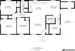 The bedroom layout is thoughtfully arranged, with the main bedroom offering its own en suite bathroom, while the two additional bedrooms are well-sized and located near the second full bath. A dedicated laundry room positioned just off the kitchen adds convenience without interrupting the flow of the home.