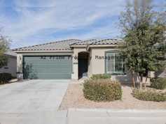 Live in style in this exceptional 4/2 home, thoughtfully designed for modern lifestyles. A tasteful mix of tile and carpet flows throughout, combining elegance with comfort. A dedicated den/office offers the ideal quiet retreat. The chef-inspired kitchen features stainless steel appliances, abundant cabinetry, and a large island perfect for entertaining. Relax in the spacious living room with serene patio views. The split master suite includes a generous walk-in closet and private bath. Additional bedrooms are roomy and versatile. Set on an oversized lot, the home also offers a 2-car garage, inside laundry and a backyard oasis with covered patio and lush turf. Embrace the Maricopa lifestyle today!