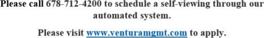 Please view all of our available properties with descriptions, pictures, and video tours online at venturamgmt. com vacancies and apply online!!!