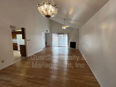 This bright and airy townhome is nestled in a quiet community and offers a comfortable, neutral palette throughout. Stylish faux wood flooring flows through the main living spaces, complemented by tile in the kitchen. Features include a two-car garage, a versatile den or office, vaulted ceilings, ceiling fans, and a charming beehive fireplace. Enjoy the beautifully maintained community pool and convenient access to the 51 freeway. Absolutely no pets, no smoking allowed.