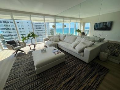 Amazing views oft he ocean, intercostal and Bay from the updated 1 Bed / 2 Bath unit of the building . The residence is furnished, granite kitchen countertops, roller shades and porcelanato floors to ceiling glass window and large balcony. The Harbour House has a market, gym, lounge area, pool and beach service directly on the ocean. Walking distance to the beach path all the way to South Beach, restaurants and retail at Bal Harbour Shops and Bay Harbor Islands.