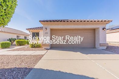 Welcome to this captivating 2-bedroom, 2-bath residence situated in the desirable Surprise neighborhood! This home boasts a fabulous location and offers a spacious open great room, complete with a sitting area/den and a charming bay window. The kitchen is a chef's delight, featuring a breakfast bar, all appliances, and an abundance of counter space. The primary bedroom is a haven of comfort, showcasing an en-suite bathroom with a handicap shower/tub combo and a generously sized walk-in closet. With a well-appointed secondary bedroom and a bathroom featuring a tub/shower combo, this home provides ample space for relaxation. Enjoy the outdoors on the large covered patio, surrounded by low maintenance landscaping. Additionally, the property includes a 2-car garage for your convenience. Located in close proximity to the Bell Road/Sun City Grand area, you'll have easy access to a plethora of amenities. We invite you to discover the charm and convenience of this remarkable home!