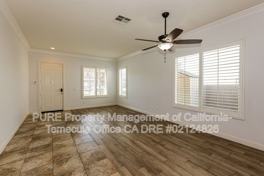Spacious 4-bedroom, 3-bath home in Murrieta, CA featuring a versatile loft and separate family and dining rooms for flexible living and entertaining. The kitchen is appointed with granite countertops, a dishwasher and tile flooring, while adjacent laundry room includes washer and dryer. Primary bathroom offers his-and-her sinks and a walk-in closet for added convenience. Interior highlights include crown moulding, custom paint, ceiling fans, carpeted areas and a cozy fireplace. Step outside to a covered patio perfect for outdoor seating. This residence combines practical design and thoughtful finishes throughout.