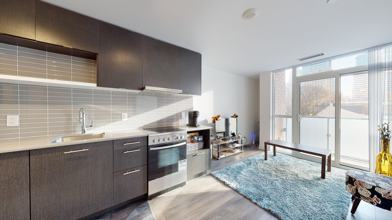 Sophisticated One Bedroom Plus Den with Door. Modern Kitchen With Built-In Appliances And Stone Countertop. Central to Universities, Subway Stations, Shopping, Restaurants, Hospitals, And More.