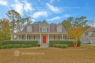 Home Features and Amenities: Air Conditioning, Bay Windows, Covered Porch, Deck, Fenced Yard, Fireplace, Granite Countertops, Kitchen Island, Long Lease Terms, Luxury Vinyl Plank, Pet Friendly, Smart Home, Stainless Steel Appliances, Tile, W/D Hookups, and professionally managed by Invitation Homes.