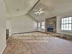 Discover this fascinating 3-bedroom, 2-bathroom home in Corinth! Nestled under soaring shade trees, this residence welcomes you with warm neutral tones and vaulted ceilings. The stunning galley kitchen is a true highlight, boasting quartz countertops and an abundance of cabinet and counter space, plus a cozy breakfast nook. Enjoy the ease of minimal carpeting, with most areas featuring hard-surface flooring. The oversized master suite offers a spacious retreat, while the split-bedroom floor plan provides enhanced privacy. Step outside to a huge covered patio in the private, fenced backyard perfect for cookouts and entertaining. Conveniently located close to highways and shopping. Fireplace marked as NON-USABLE. Tenant is responsible for providing their own refrigerator, washer, and dryer.