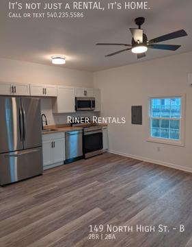 This newly renovated two bedroom, two bathroom aartment just steps from downtown Harrisonburg is ready for you to call home! Mini splits provide efficient heat and AC, the new kitchen includes all new appliances with plenty of storage. 2 new bathrooms, one with a fully tiled step in shower and bluetooth enabled vent lights! All new energy efficient flooring thorughout, direct exterior access to both bedrooms, and all on one level! Come make this apartment your new home in Harrisonburg, steps from JMU, the Harrisonburg Downtown district, and plenty of dining and shopping. Call 540-438-8800 or visit Rinerrentals. com to schedule a showing today!