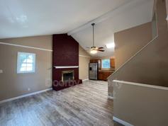 Step inside to find a welcoming living room featuring a decorative fireplace that adds a touch of charm. The open-concept layout flows seamlessly into the kitchen, which comes equipped with a stainless steel refrigerator, range, and dishwasher, making it both functional and stylish.