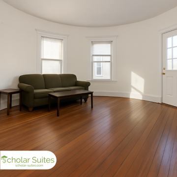 This private bedroom is managed by Scholar Suites, a housing company that works with students to provide fully managed, move-in-ready off-campus living. Each unit is shared only with other students in the area.
