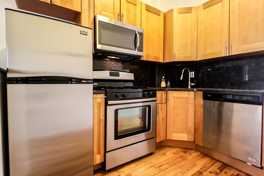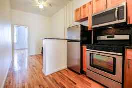 This 2 bedroom apartment features spacious living room, queen sized bedrooms, stainless steel kitchen, modern bathroom, hardwood floors, and windows that let in natural light throughout.