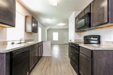 The Coral plan is a modest one story home with 2 bedrooms and 2 bathrooms. Enjoy a spacious living room area with views into the kitchen. The primary bedroom is spacious and has a private bath. Two car garage in the rear of the home. Features include wood-grain vinyl plank flooring, two car garage, fenced backyard, and a sprinkler system. All homes are SimplyMaintained for a $100 monthly fee that includes front and back yard lawn care and exterior pest control. Nestled in southeast Fort Worth near Interstate 20 and Highway 287, Enchanted Bay offers a peaceful setting with quick access to downtown Fort Worth, Arlington, and nearby employers. Zoned to Fort Worth ISD, the community features a playground and inviting green spaces with benches, perfect for enjoying the outdoors. With Lake Arlington just minutes away for fishing, boating, and trails, Enchanted Bay combines everyday convenience with relaxed lakeside charm.