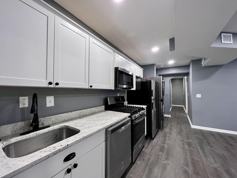 This renovated unit in Brentwood is available now! The modern and sleek kitchen features stainless steel appliances and granite countertops.
