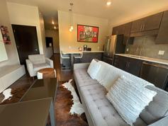 Looking to live downtown in a fully furnished townhome with an excellent floorplan? Check out this fully furnished space with a sleek modern design. It features 11ft ceilings, large windows, garage door window, huge family room with wood floors, heated flooring in the lower level. a kitchen with quartz countertops, stainless steel appliances and a breakfast bar! Laundry units in townhome.