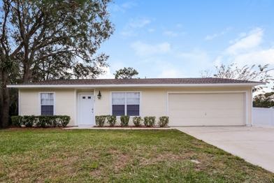 Located at 2345 Captain Dr in Deltona, FL, this 3-bedroom, 2-bathroom home offers 1,128 square feet of well-utilized, single-level living designed for comfort and efficiency. The exterior presents a clean, low-profile design with an attached two-car garage, while inside, the layout makes the most of every square foot with clearly defined yet connected living spaces.