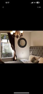Upon entering the space you are greeted with a spacious living room , comfy full size sofa bed