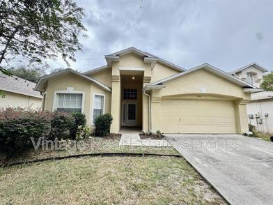 Pet FriendlyConvenient Location and Stunning Upgrades!! Open Great Room with Wood Floors, Formal Dining Room with furniture niche, Bright and Open Kitchen with Breakfast Bar, Stainless Steel Appliances, Upgraded Tile, and Eating Area PLUS a 3-way Split Bedroom Layout giving everyone their own space! Spacious Master Suite with Walk-In Closet, Dual Sinks, Garden Tub and Shower. Front Bedroom has a bay window and is closest to a full bath. Bedrooms 2 & 3 share a full Jack and JillBath -- Plus Closet Organizers in all four bedrooms! PLUS Storage Space in the semi-finished Attic with pulled down stairs. MUST SEE Florida Living Space with Screened Lanai with Sun Blinds and a lovely Private Backyard. Well Cared For Home is readyfor New Tenants! Pavilion offers a great location -- convenient to I-75, 1-4 and the Crosstown Expressway -- Makes any commute easy! PLUS New Shopping Center at the beginning of the community. Be near to everywhere you need to be! Community also offers Community Pool, Clubhouse, Park, Playground, Fitness Center and Tennis Courts. New carpet being installed in 4 bedrooms.