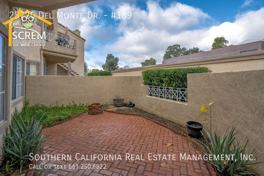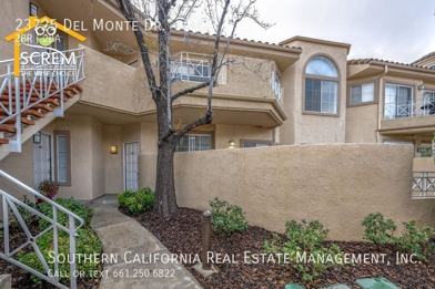 Discover this charming two-bedroom, two-bathroom lower unit located in Santa Fe in the heart of Valencia. This property features laminate flooring throughout the main living space. The living room includes wainscoting, crown molding, a gas fireplace, and a sliding glass door that leads to a spacious private patio. The dining area features a mirrored wall and opens to both the kitchen and living room. In the kitchen, you will find white cabinets, wood laminate flooring, a breakfast bar, and essential appliances, including a gas stove, single oven, dishwasher, microwave, and refrigerator. The guest bedroom features wainscoting, crown molding, and a cedar-lined closet. Full guest bathroom. A laundry closet in the hallway is equipped with a stackable washer and dryer. The primary bedroom also boasts wainscoting, crown molding, carpet flooring, and a walk-in closet lined with cedar. The attached bathroom features double sinks and a walk-in shower. Water and trash are included in the rent. This unit includes a detached one-car garage and one assigned parking space. Residents can enjoy the HOA pool and spa. Conveniently located within walking distance of shopping and restaurants. *Owner may consider a small pet.