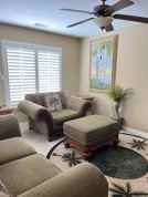 * - Large BEDROOM: California King Bed, 2 Night Stands, Dresser, Ceiling Fan, Pub and Chairs