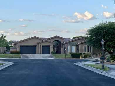 ONE YEAR LEASE AT $7900.00- This 4 Bedroom home with s is nearly 4000 square feet and is a resort-style home located at the end of a super quiet cul-de-sac in a prestigious gated community of Victoria Falls in Rancho Mirage. Total privacy is assured as the property is surrounded by 8 ft walls. Complete open floor plan as you enter this beautifully decorated home with new furniture, appliances, and TVs. The complex offers Pickleball & tennis & basketball courts. The large majestic palm trees provide a nice backdrop along with the views of the San Jacinto Mountains. This grand property boasts 3 large bedrooms and a large private office, modern kitchen with a big island, an open-plan living and family room with a fireplace. Play Ping-Pong or Billards, massage chair, listen to CD's from the big collection, read a book from the collection, Relax in the private backyard under the shade of a tree in the oversized swing chair. Take a dip in the property's oversized swimming pool with a diving board or lounge on a chair working on your tan. BACKYARD The 15000 sq ft grassed backyard will make you feel like you are at your own private 5-star resort for less money! The north west facing yard provides year round sun throughout the day while orange, grapefruit, tangerine, black berries and lime trees provide an abundance of fruit. 4 BR - 3 with King size beds, 4th is an office. MAY CONSIDER LESS THAN 1 YEAR. CALL FOR SEASONAL RATES