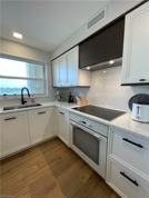 Step inside to find a spacious, light-filled interior featuring marble and vinyl flooring, coffered ceilings, and a wet bar, ideal for entertaining. The open floor plan seamlessly connects the living and dining areas, leading to a private balcony and glassed-in porch where you can savor serene water views. The kitchen is equipped with modern appliances, including an electric cooktop, dishwasher, microwave, and refrigerator, ready for your culinary creations.