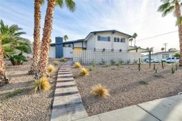 Stunning Mid-Century Modern home in the highly desirable historic neighborhood of Paradise Palms on a corner lot. This iconic & much sought after Krisel tri-level plan 5A has been completely renovated in 2022. New solar, water softener & reverse osmosis. Vaulted ceilings, floor to ceiling windows, open concept kitchen, living room (with wood-burning fireplace) & dining on main floor with patio door to pool. Bottom level has designated separate laundry room, large den / family room with 1/2 bath & an additional downstairs suite WITH PRIVATE ENTRANCE, kitchenette & full bathroom. Primary room with ensuite bath. Original breeze blocks, clerestory windows throughout & an oasis of a backyard with pool, outdoor shower, outdoor dining & lounge space. Available furnished - this home is absolutely gorgeous!