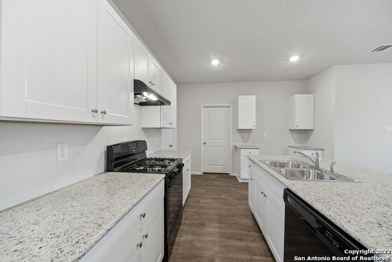 NO APPLICATION FEES and MOVE IN CONDITION REPORT FEE WAIVED IF APPLICATION RECEIVED BY OCTOBER 10TH. Fantastic and modern 4-bedroom, 2.1-bath home ready for you! The spacious primary bedroom is conveniently located downstairs and features a large walk-in closet for all your storage needs. The island kitchen boasts sleek granite countertops, gas cooking, and plenty of space to whip up your favorite meals. The laundry room provides direct access to the 2-car garage for added convenience. Upstairs, you'll find a versatile second living area or family room, perfect for relaxing or entertaining, along with the secondary bedrooms. This home is ideally located just 15 minutes from Lackland Air Force Base and close to popular attractions like Sea World and Fiesta Texas. Plus, you'll love the abundance of new shopping options in the area! The neighborhood community is packed with amenities, including a sparkling pool and a fun playground for kids to enjoy. Please note that photos are from the twin home on Kettle and may vary slightly in color. This gem won't last long! Schedule your viewing today before it's gone! This property offers a "0" dollar security deposit with the approval of Obligo or Rhino policy.